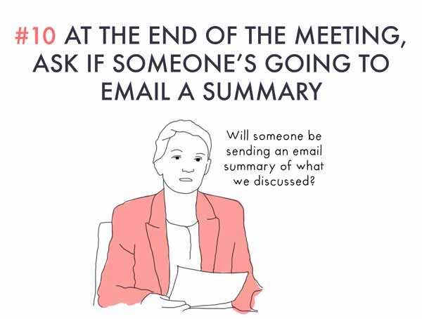 Show your coworkers you really care about what happened in the meeting by asking for an email summary, but also show them how valuable your time is by making it clear someone else needs to do this.