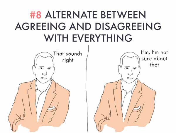 No one should ever be able to predict if you’re going to like or approve of anything. You know, like how it is with CEOs. The best way to fake this is to randomly alternate between agreeing and disagreeing. You’ll be perceived as a mystery and everyone will be on the edge of their seats wondering what you’re going to say.