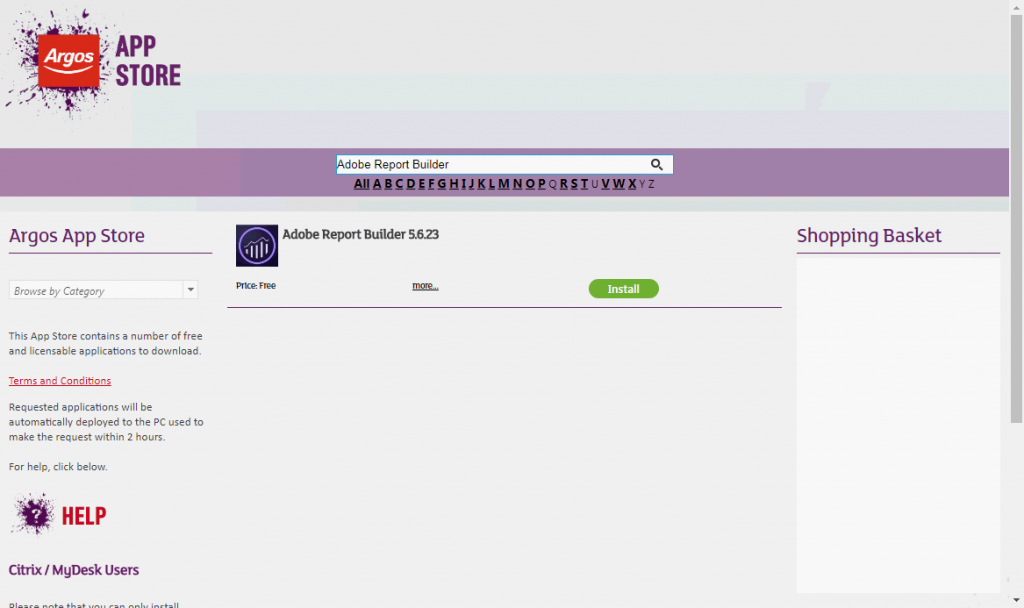 - Open the Argos Software Store http://appstore.argosretailgroup.com