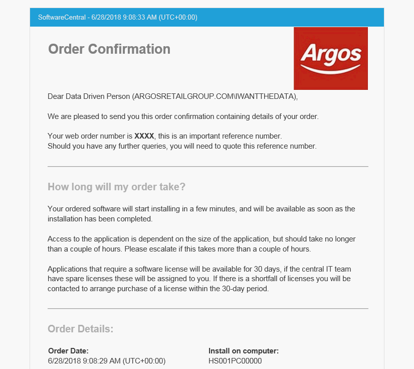 - Lastly you should get a confirmation email confirming the software will be installed shortly.
